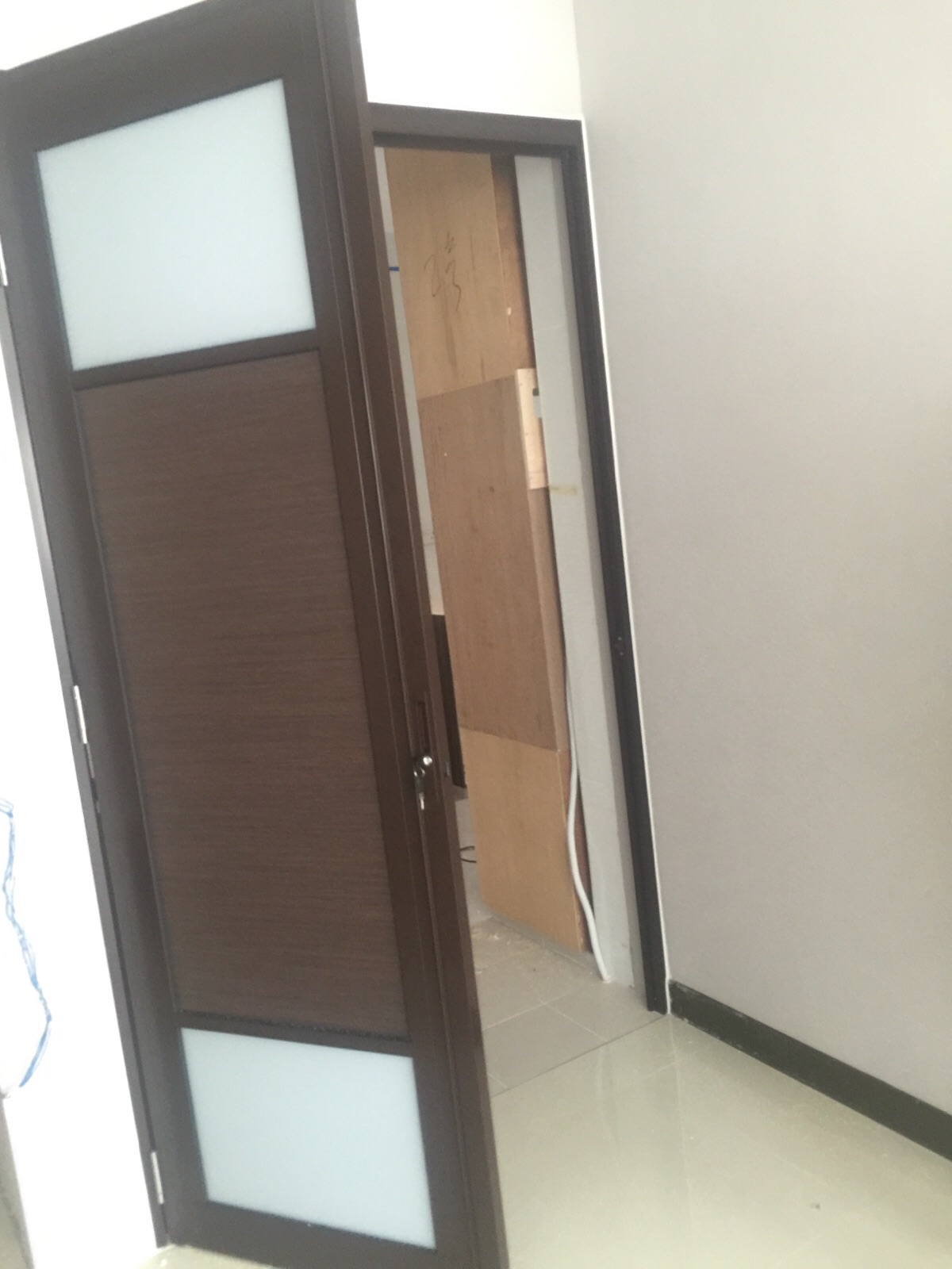 Frosted glass right infront of front door. Shoe cabinet on the right.